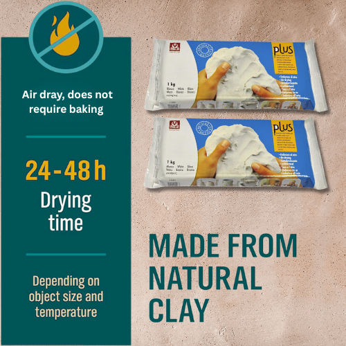 Premium Materials & Easy Drying: Our kit includes 2 kg (2 x 1 kg) of SIO-2 PLUS Air-Drying Modeling Clay . This clay is made from natural clay, requires no firing, and air dries. Drying time is typically 24 to 48 hours , depending on the size of the object and the temperature.