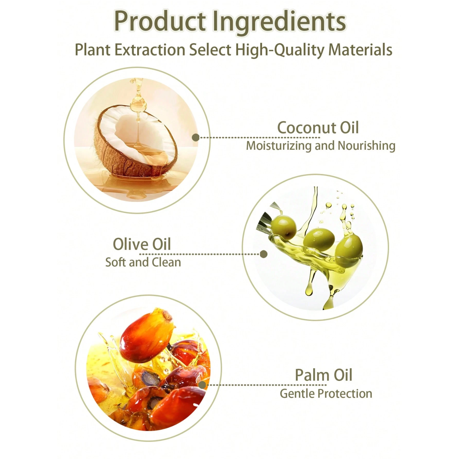 Premium Base Materials & Natural Ingredients: Our soap kit contains a clear Melt & Pour soap base (1 kg / 2.2 lb / 35.2 oz) made from high-quality plant extracts. This base is enriched with coconut oil (moisturizing and nourishing), olive oil (gentle and cleansing), and palm oil (for delicate protection).