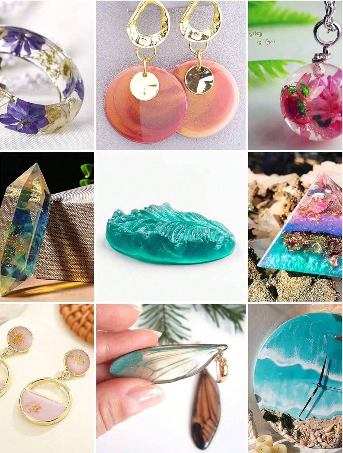 - Acabado personalizable y aplicación versátil: El kit incluye pigmentos líquidos y purpurina de colores para dar color a la resina y varios moldes de silicona (para joyería, posavasos, etc.). Para la creación de joyas, se incluyen 5 pares de ganchos para pendientes de plata de ley 925.